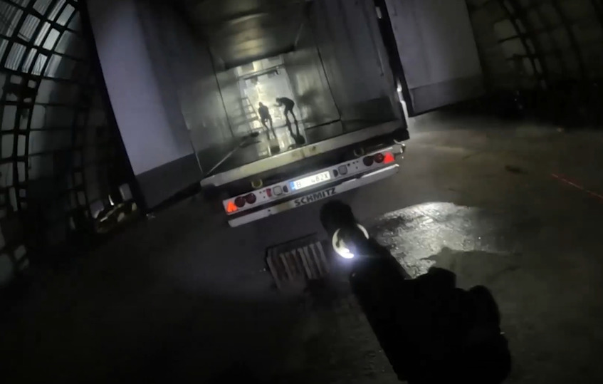 Завершение спецоперации было снято на камеры, закрепленные на бронежилетах бойцов спецслужбы. Развязка заняла от силы пару минут. Вот силовики бегут от служебного микроавтобуса в ангар, где стоит прицеп с тайником, а уже спустя короткое время приказывают находившимся внутри мужчинам лечь на пол. Команду произносят на русском и тут же дублируют на английском. Еще минута — и на запястьях обоих задержанных защелкиваются наручники.
