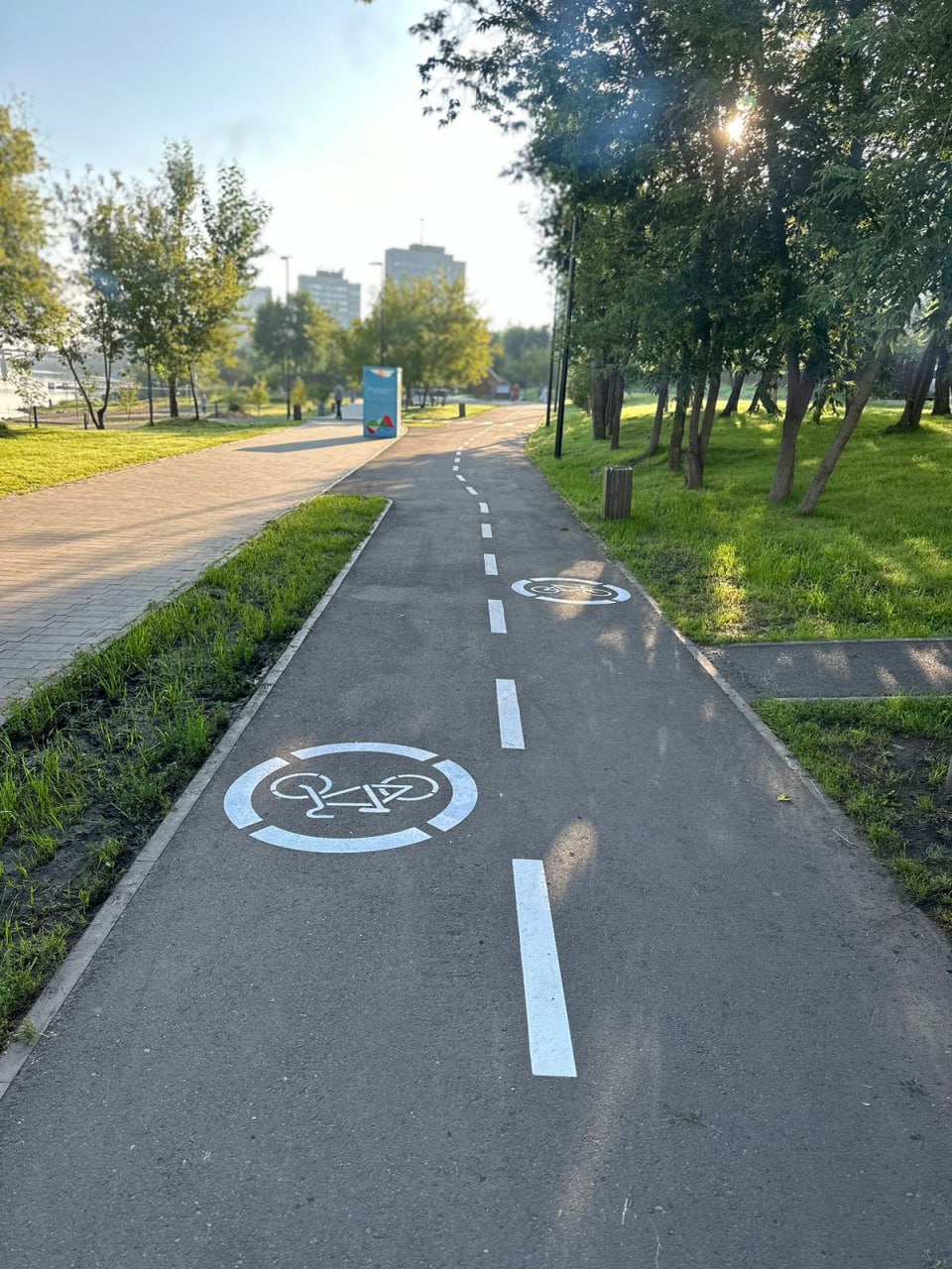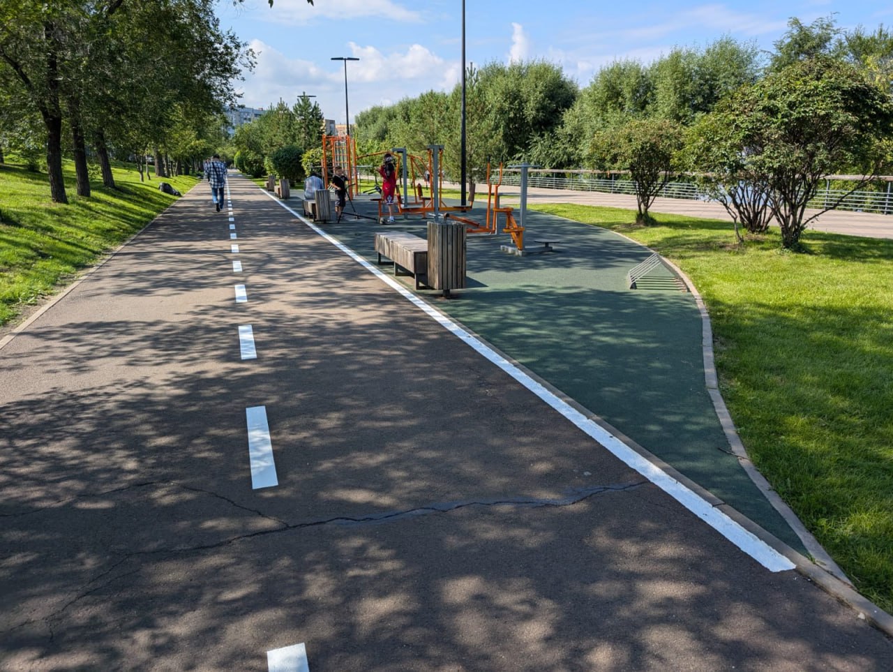 Её протяжённость составила чуть более километра. Специалисты установили пешеходные переходы через велодорожку и информационные знаки.