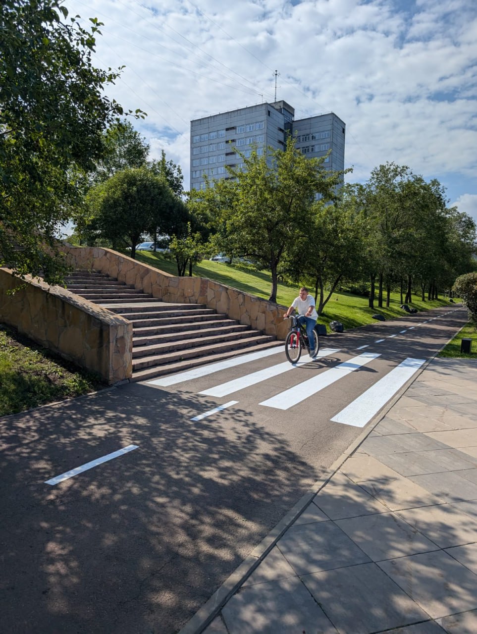 В Красноярске на Ярыгинской набережной нанесли велосипедную разметку