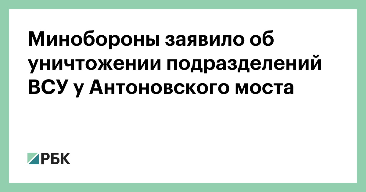 Российские военные уничтожили подразделения украинской армии, которые находились в районе острова Антоновский у одноименного моста в Херсонской области, сообщает Минобороны России. Мост соединяет правобережный Херсон с левобережной частью Херсонской области, которая находится под контролем России.
