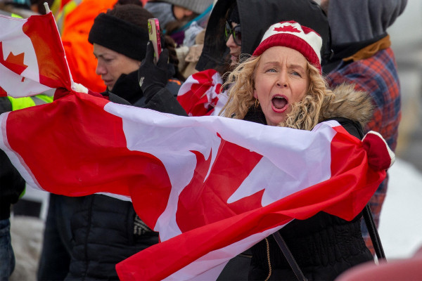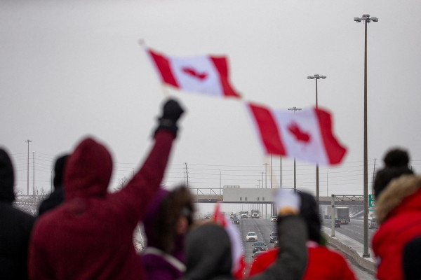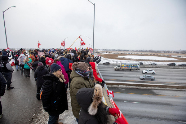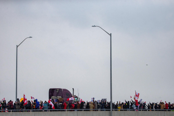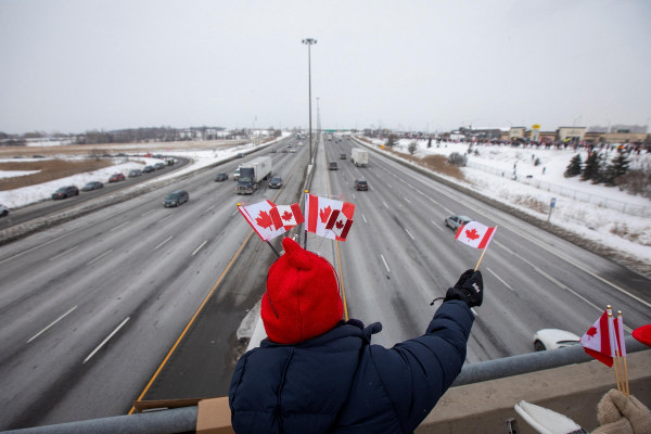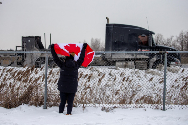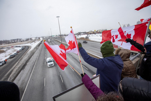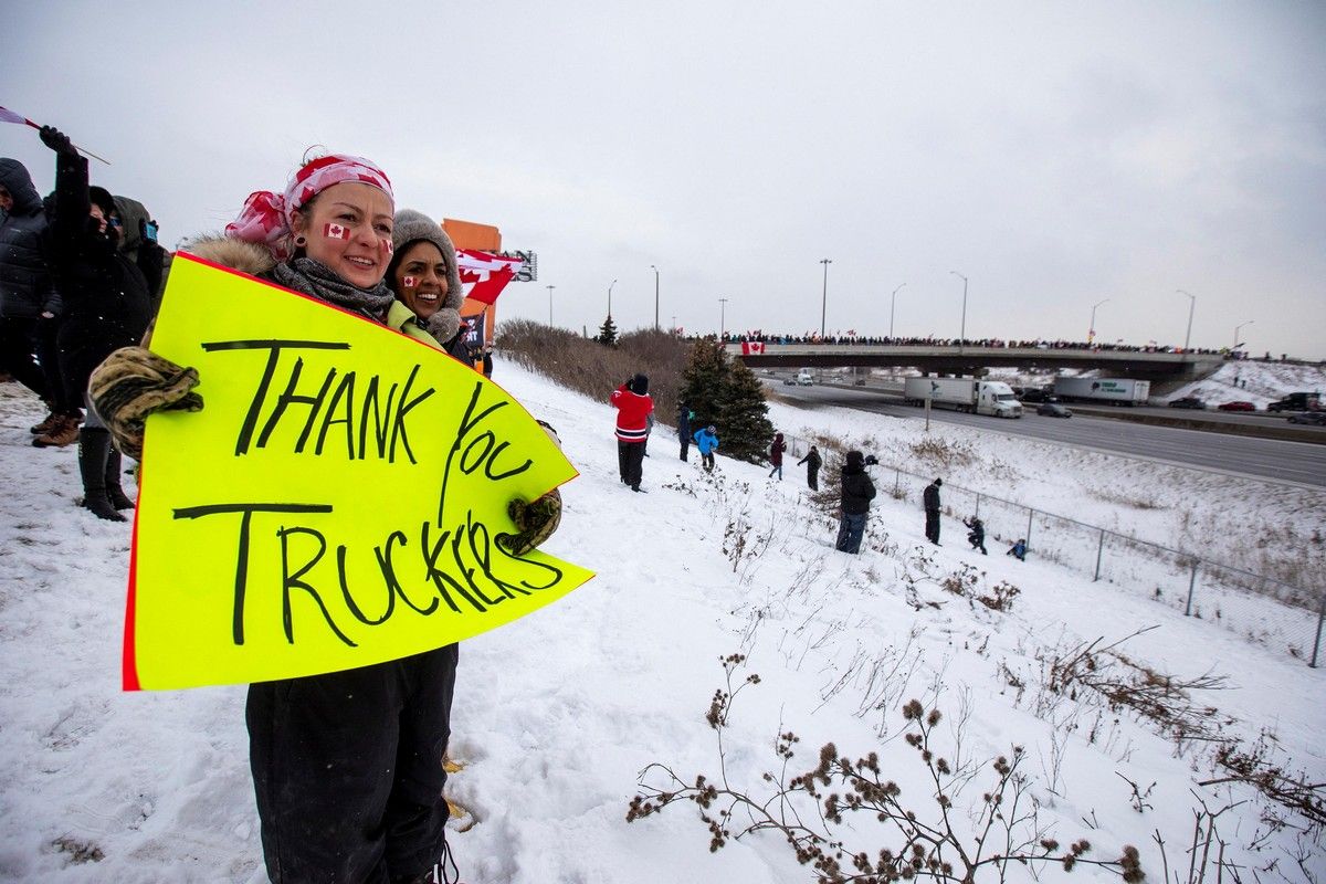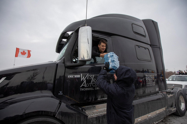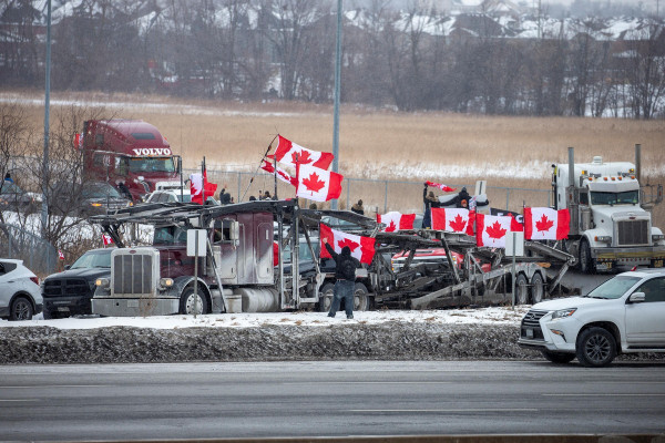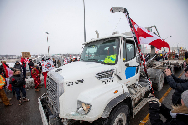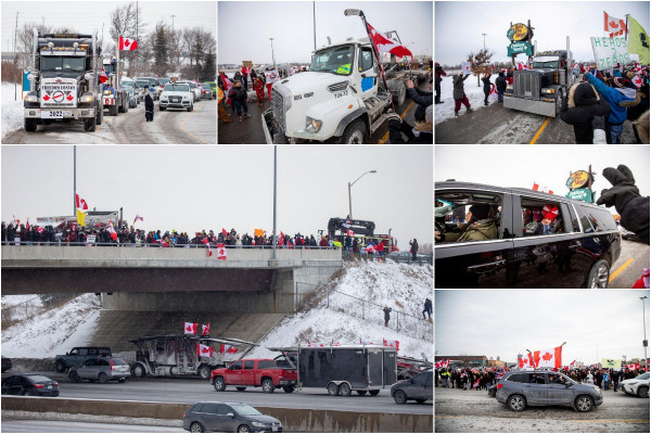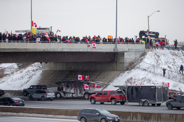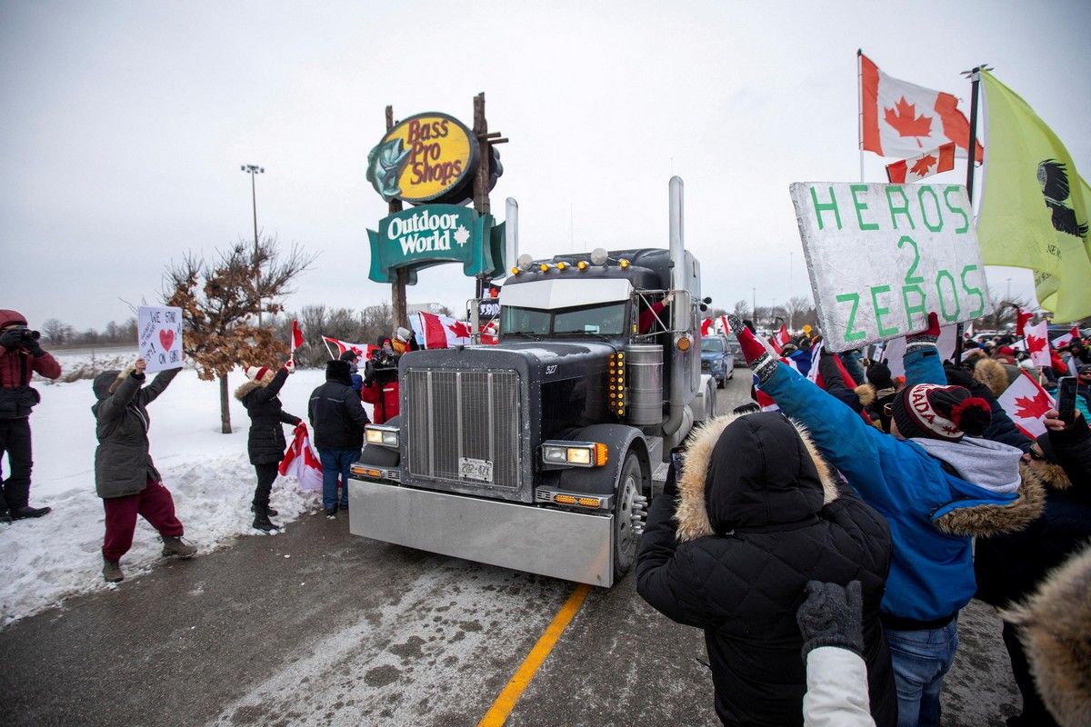Колонна дальнобойщиков в Канаде, протестующих против введения вакцинации для водителей грузовиков, пересекающих границу США и Канады, имеет длину 45 миль и направляется в Оттаву.