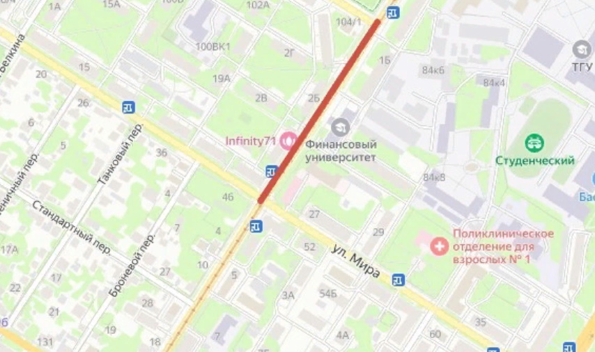 Речь идет об участке от улицы Мира до улицы Тульского Рабочего Полка. Здесь ограничили движение, запретили стоянку и остановку транспорта.