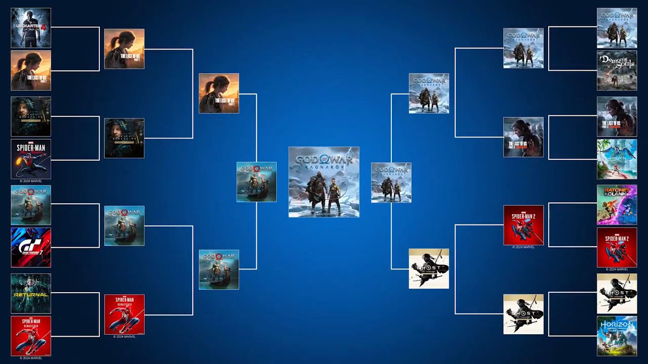 Всего в конкурсе участвовали 16 игр. В каждом раунде игрокам предлагалось проголосовать за одного претендента в восьми парах — победитель проходил в следующий тур. В итоге до финала дошли две части God of War: тайтл 2018 года оказался на втором месте, а лидером стала God of War Ragnarök.