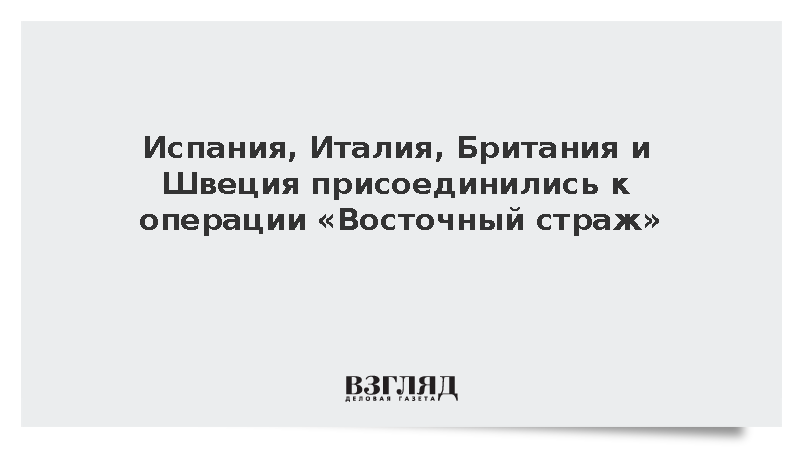 О скором присоединении Испании, Италии, Британии и Швеции к инициативе НАТО «Восточный страж» говорится в заявлении, опубликованном на сайте альянса, передает РИА «Новости». Отмечается, что операция предполагает усиление оборонительных мер восточного фланга НАТО после инцидента с беспилотным летательным аппаратом в Польше.