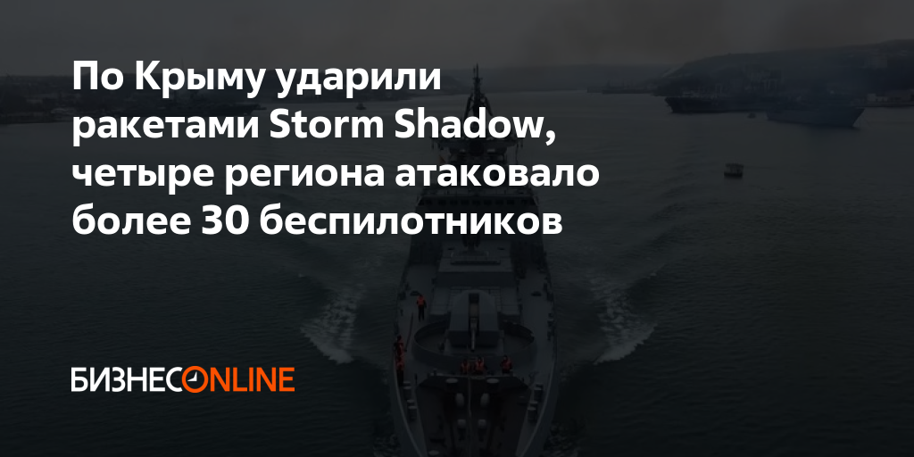 Над Крымом сбили четыре англо-французских крылатых ракеты большой дальности Storm Shadow. Четыре российских региона — Крым, Белгородскую, Курскую и Липецкую области — за ночь атаковал 31 беспилотник, сообщает минобороны РФ.
