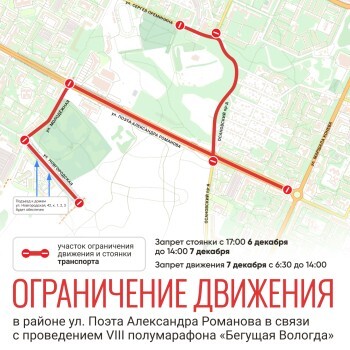 Парковка и движение по областному центру в районе улицы Поэта Романова будут сильно ограничены подготовкой и проведением полумарафона. Об этом сообщает Администрация Вологды.