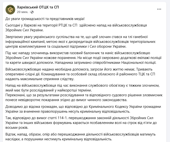 В Харькове напали на сотрудника ТЦК