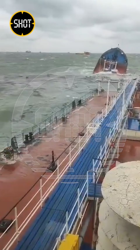 Как стало известно SHOT, «Волгонефти-212» волнами поломало нос, у второго судна волнами разрубило корму. Часть нефтепродуктов вылилась после крушения. Волнение моря сейчас доходит до 7 баллов.
