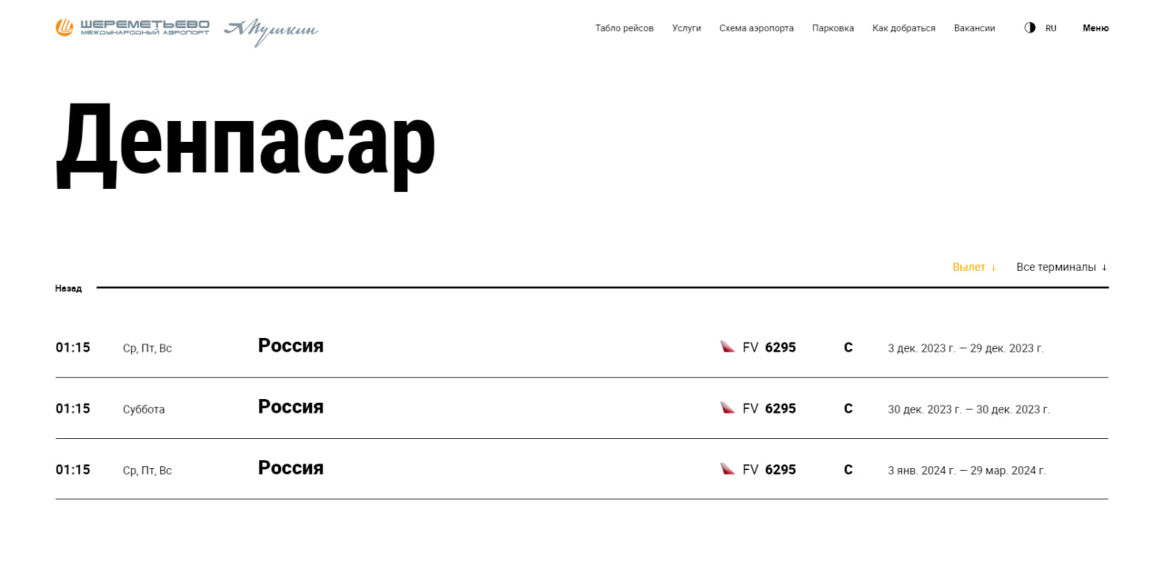 🇮🇩❗️ Рейсы на Бали снова появились в расписании аэропорта Шереметьево, заметили @vandroukiru.