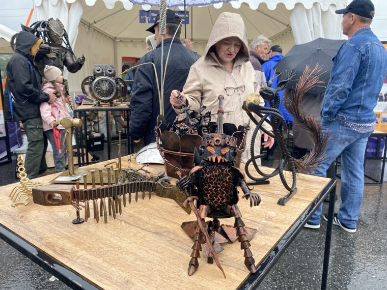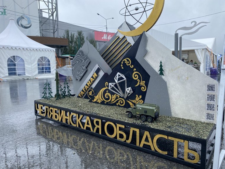 Несмотря на ливень, супруга губернатора осмотрела всю экспозиции фестиваля. На одной из площадок врио мэра Златоуста Олег Решетников взял в руки молот и отчеканил памятную монету.