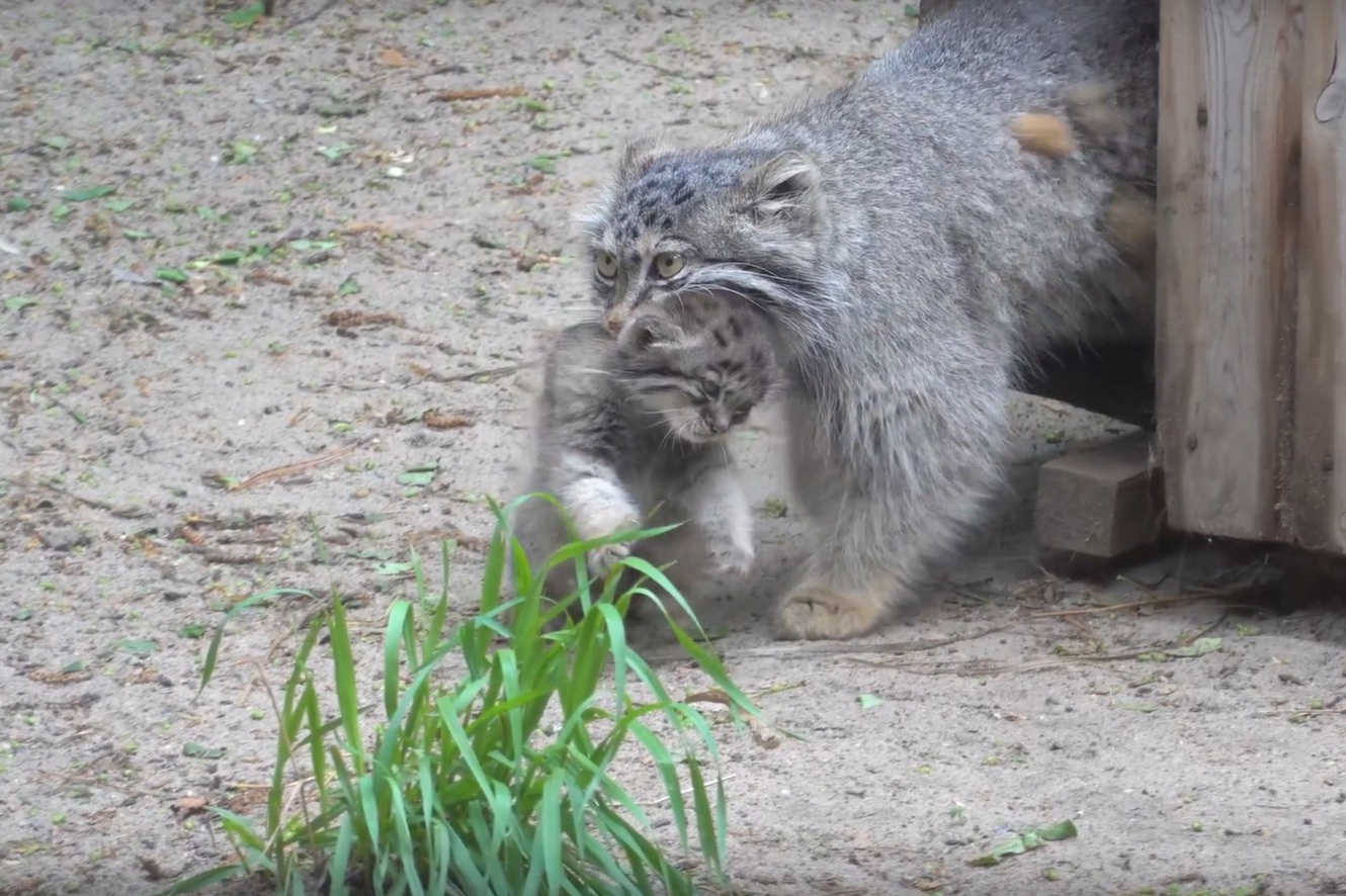 В Новосибирском зоопарке гостям начали показываться манулята. Их удается даже снять на видео. У детенышей пока еще голубые глаза.