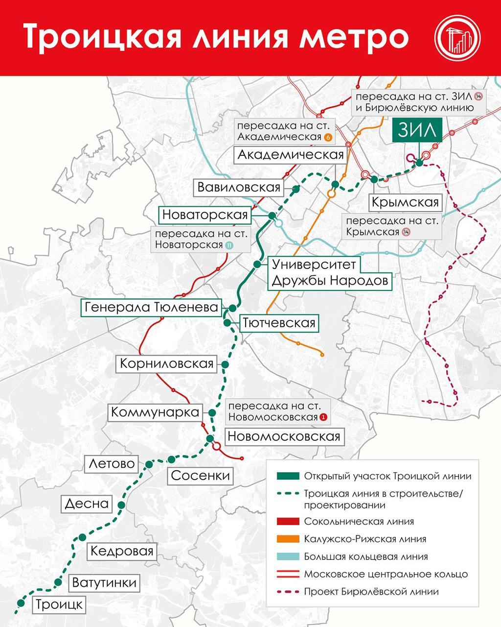 Он рассказал, что в 2024 году в Москве открыт первый участок Троицкой линии. Также реализуются проекты Рублево-Архангельской линии метро, завершение намечено на 2026–2027 годы. Строительство ветки метро Бирюлевская ожидается, сейчас идет проектирование и подготовка площадок, а основные работы планируют завершить к 2030 году.