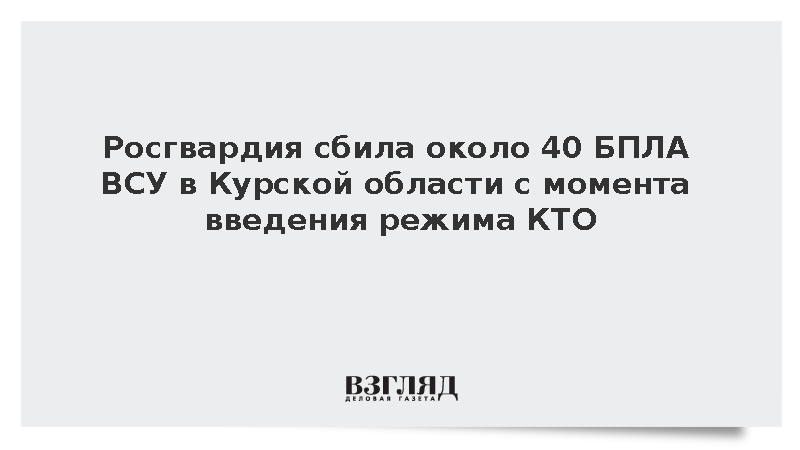 Спецназ Росгвардии с момента введения режима контртеррористической операции (КТО) в Курской области сбил порядка 40 беспилотников ВСУ, в том числе самодельного типа, сообщили в пресс-службе Центрального округа Росгвардии.