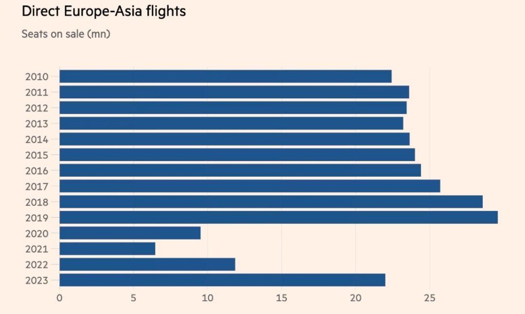 Длительность перелетов и стоимость выросла на треть, а миддл-класс европейцев лишился доступных и удобных перелетов в Азию. Стоимость перелетов из европейских столиц теперь вдвое выше, чем из Москвы.