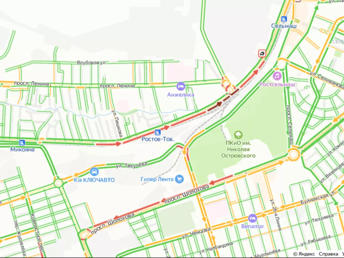 Машины столкнулись на улице Менжинского рядом с проходной «Ростсельмаша». По данным на 16:20, протяженность затора в сторону улицы Российской составляет около двух километров. Водители десятков автомобилей выстроились в ряд от улицы Нансена. Автомобилисты передвигаются по аварийному участку со скоростью не более семи километров в час.