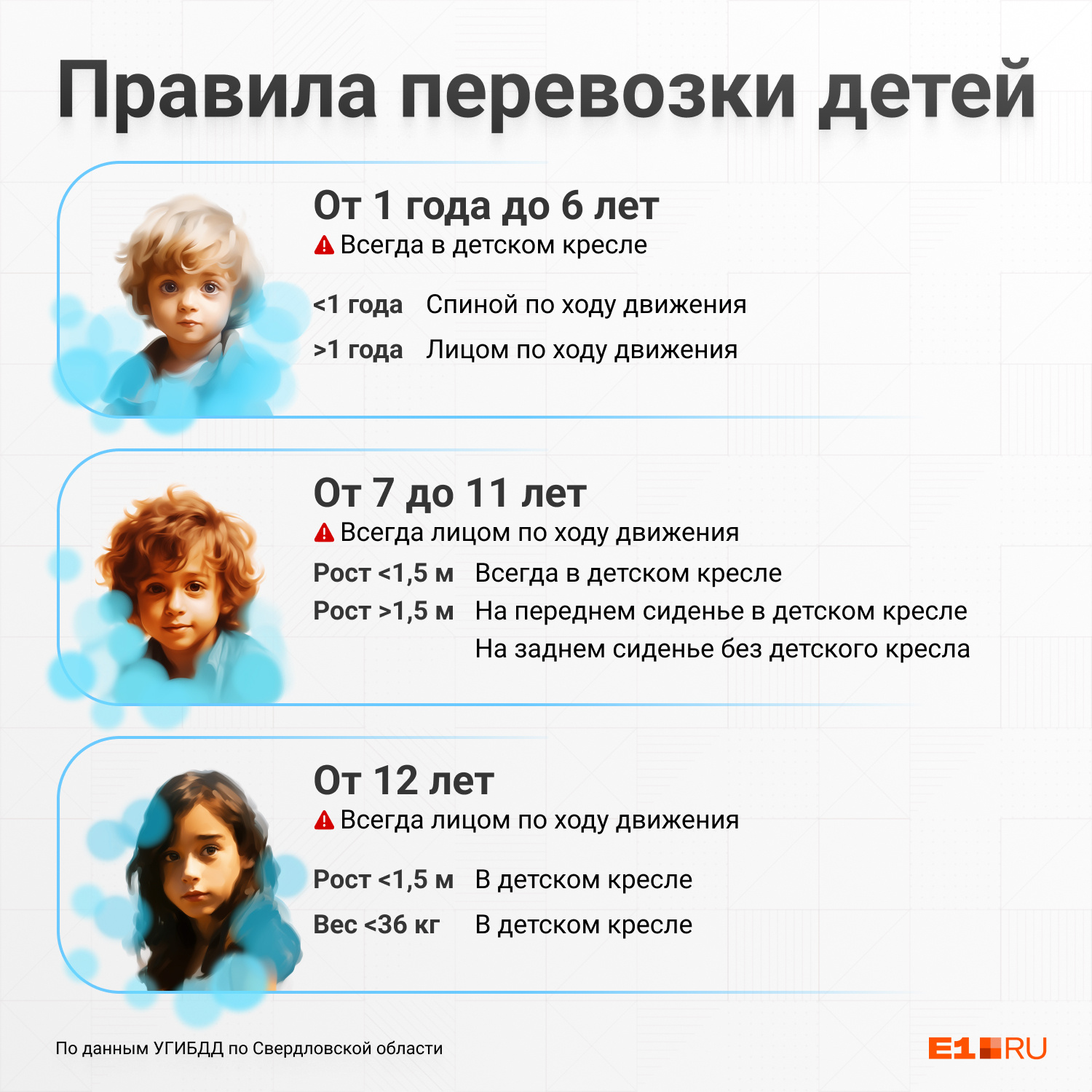 В Екатеринбурге сотрудники ГИБДД наказали водителя за перевозку на заднем сиденье восьмилетнего сына, пристегнутого штатным ремнем безопасности. Для автовладельца это стало шоком, поскольку он считал, что не нарушает правил (в ПДД говорится, что после семи лет детей можно возить на заднем сиденье без кресла).