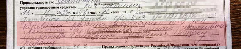 В документах, которые оформили в отношении водителя, значится описание нарушения: