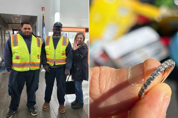 Рабочие отыскали потерянное кольцо с бриллиантами среди горы мусора