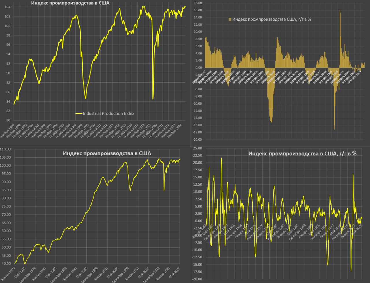 Не удалось развить «успех» апреля-июня, когда среднемесячный рост промышленности США составлял 0.15%, в июле снижение составило 0.12% м/м при годовом росте 1.43% из-за эффекта низкой базы (в июл.24 снижение составило 0.71% м/м).