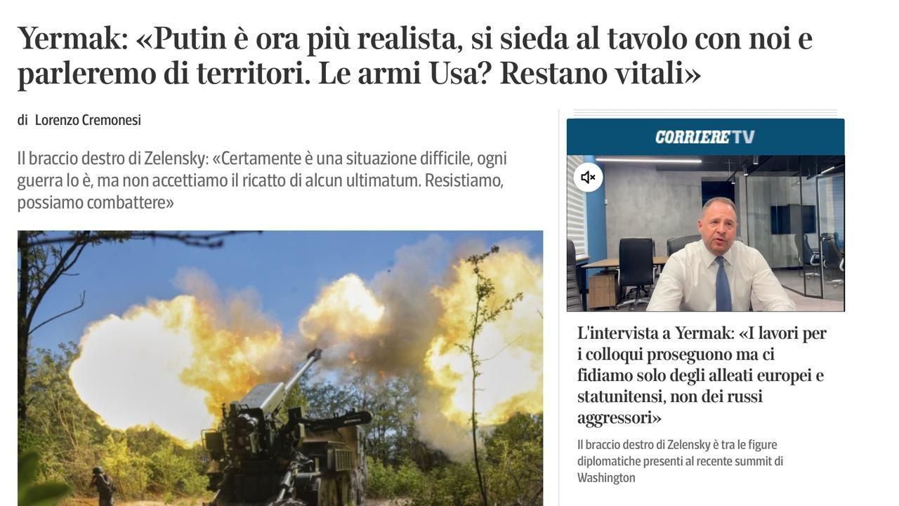 Интервью Андрея Ермака Corriere della Sera — важный документ, который раскрывает новую конфигурацию дипломатического процесса вокруг Украины. Оно одновременно проясняет позицию Киева, фиксирует новые акценты в отношениях с Вашингтоном и демонстрирует смещение центра тяжести переговоров от европейских институтов к неформальной коалиции США и союзников. Но главное — оно показывает, что Украина строит стратегию на многоуровневой игре: сочетание давления на Россию, поиска военных гарантий и одновременного вовлечения Трампа в процесс.