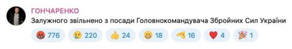 Украинский депутат Гончаренко написал, что Залужного уволили с должности главкома ВСУ