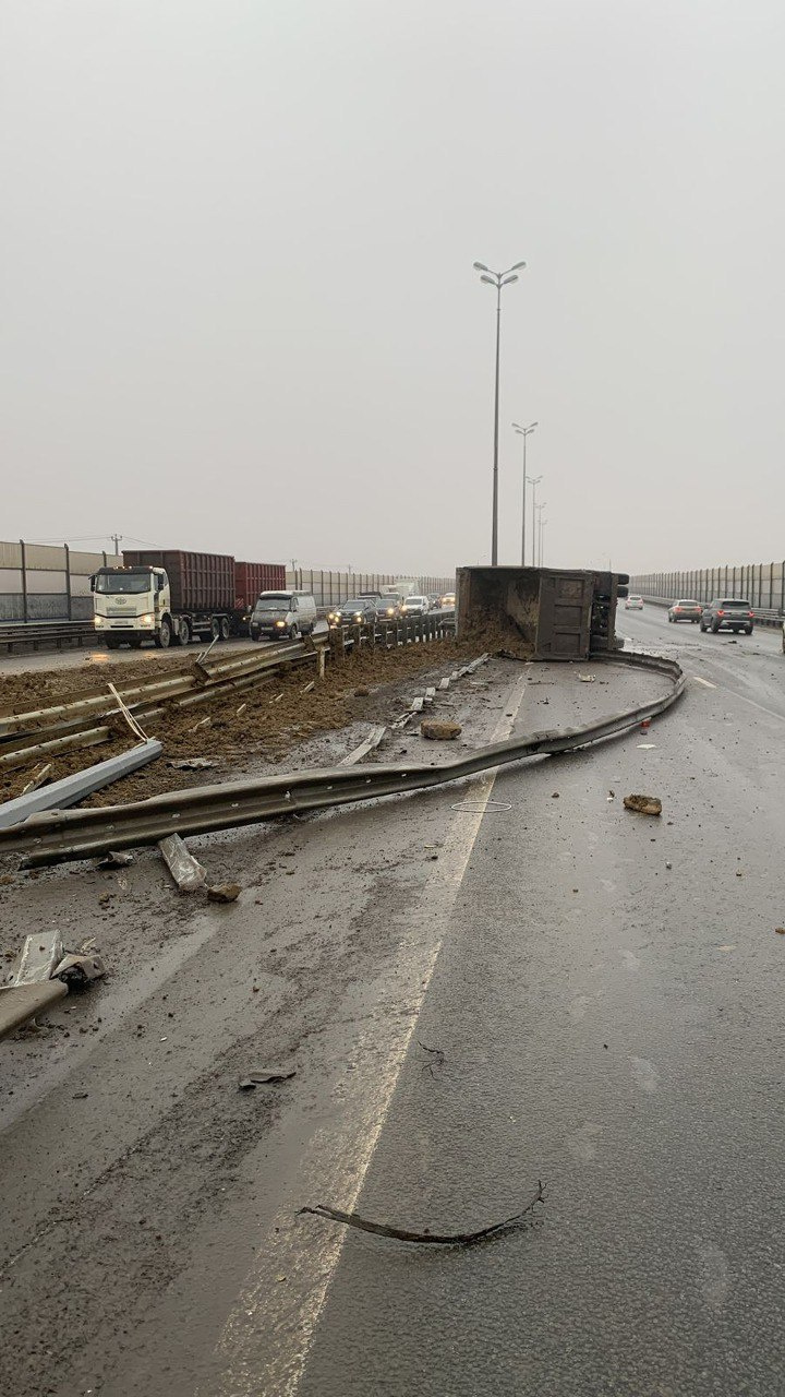 Как сообщили «Фонтанке» в пресс-службе ФКУ Упрдор «Северо-Запад», по предварительной информации, водитель грузового автомобиля, двигавшегося в сторону области, допустил опрокидывание и погиб. На месте ДТП повреждено барьерное ограждение, на проезжей части рассыпан песок. Перекрыта третья полоса в сторону области и в сторону Петербурга.