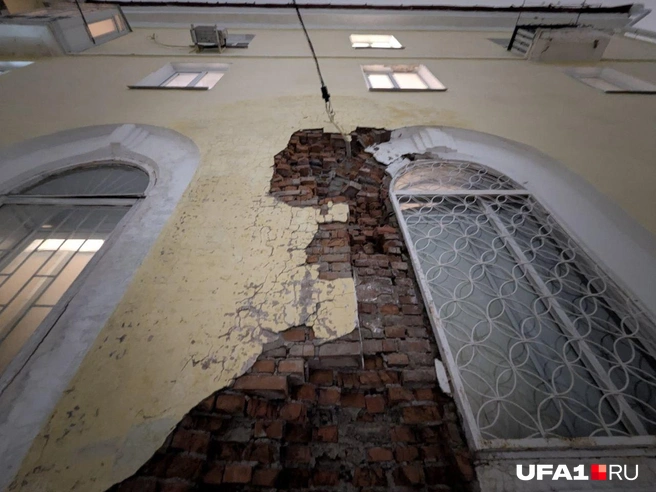 В феврале у него обрушилась облицовка со стороны двора — и на землю упала часть кирпичей. Корреспондент UFA1.RU обращался в ЖЭУ № 73, которое курирует этот дом, но там сказали, что по этому поводу может ответить только директор, а его на месте нет. На последующие звонки в ЖЭУ не отвечали.