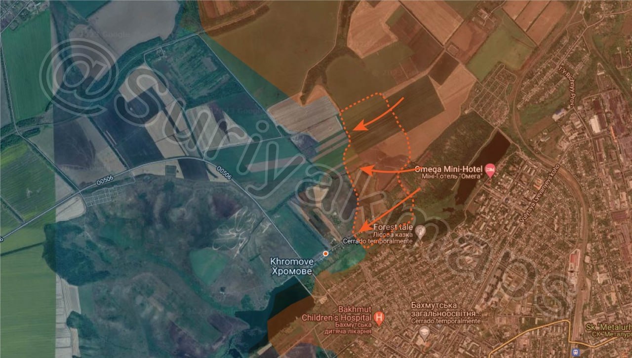 2. Севернее Бахмута удалось вернуть контроль над холмами и зайти в поселок Хромовое.