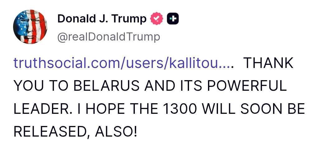 Трамп поблагодарил Белоруссию и назвал Лукашенко могущественным лидером.