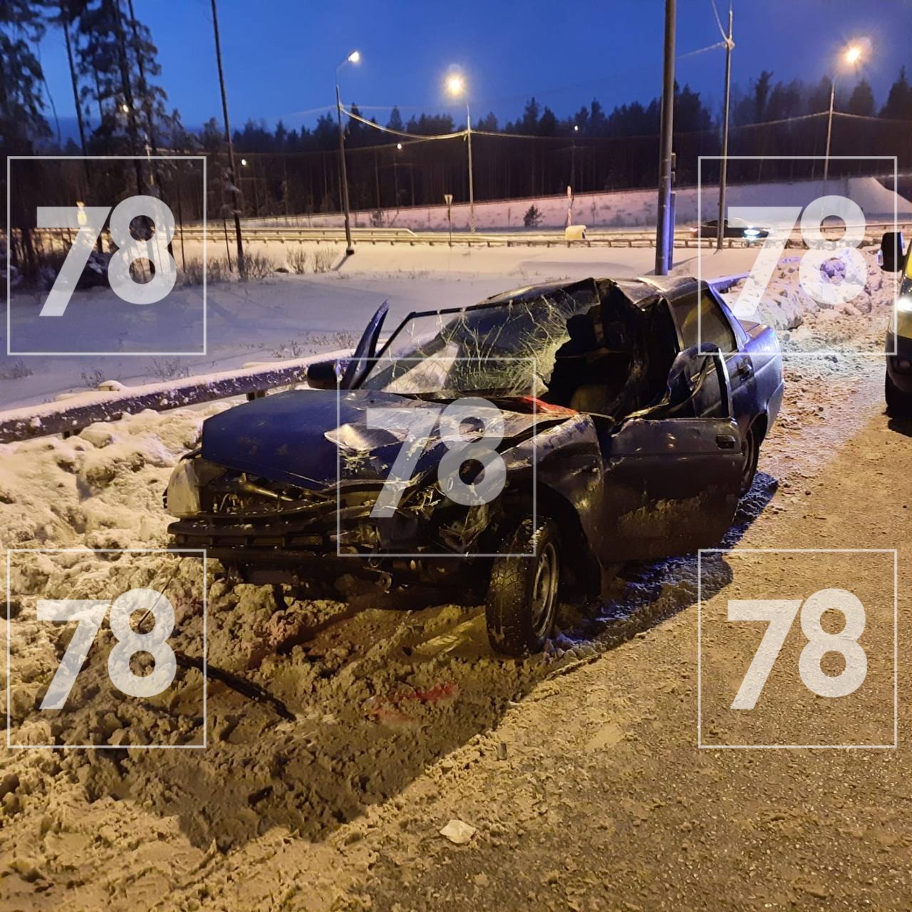 Авария произошла на съезде к Солнечному. Лада Приора на полной скорости влетела в припаркованную на обочине Газель.
