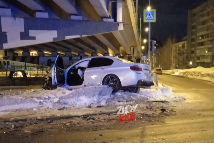 В Екатеринбурге водитель BMW на скорости влетел в стоящую на месте легковушку. Пострадавшего увезли на скорой
