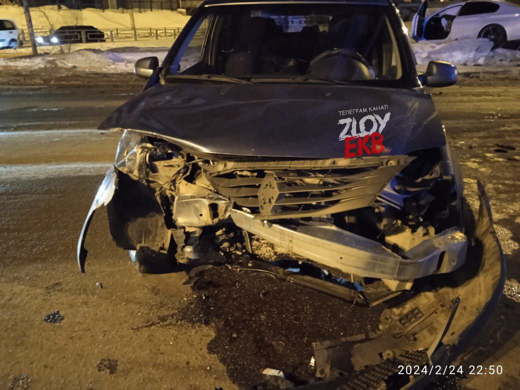 На перекрестке Восточная — Шевченко в Екатеринбурге произошла авария. По словам очевидца, водитель белого BMW на скорости влетел в черный Renault.