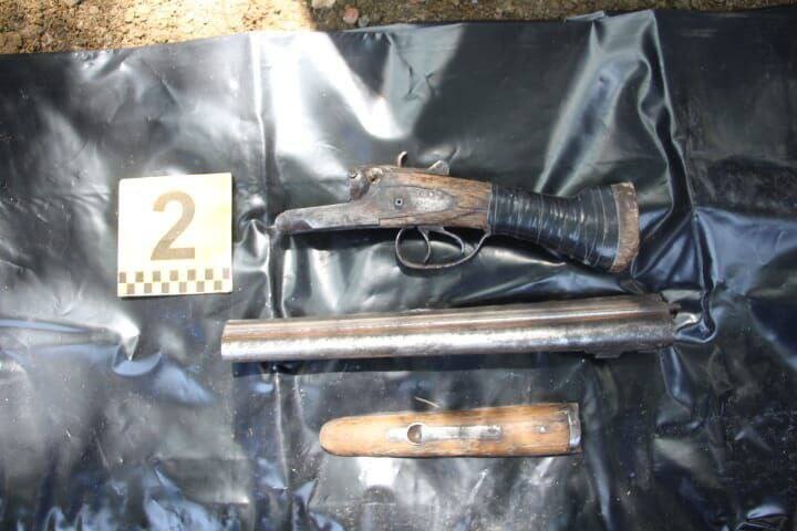 "Тайник с двуствольным обрезом, а также травматическим пистолетом STREAMER 1014 с 9 патронами был обустроен на заброшенной автозаправочной станции близ Жаркента",- отметили в полиции.