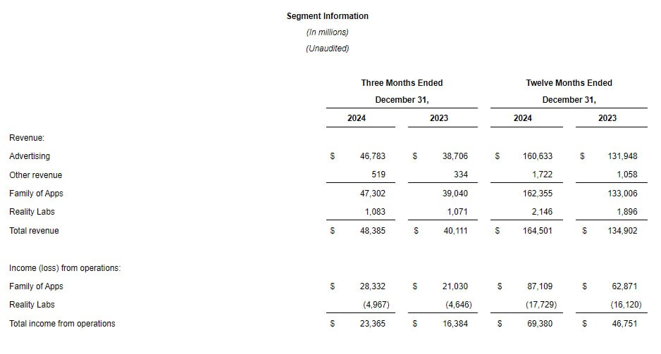 🔘Метавселенная (Reality Labs) продолжает генерировать убытки в 5 млрд при выручке в 1.1 млрд за квартал.