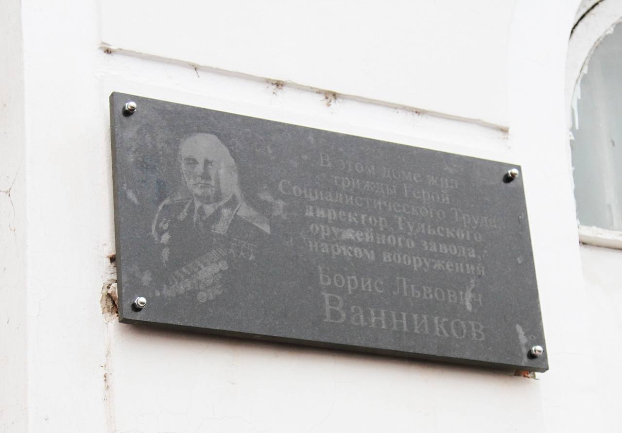 Памятная табличка появилась на здании дома №2 по улице Союзной, где проживал Ванников, когда руководил предприятием.