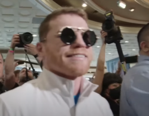 Канело со сцены заявил, что чувствует «любовь и поддержку, очень горжусь представлять Мексику. Чувствую, что наконец-то подошёл к бою в 100% форме. Не хочу сейчас много говорить. Предпочитаю сделать это субботним вечером. Вы увидите другого Канело. Что я думаю о Чарло? Что это отличный боец. Хорошо боксирует, сильный и ему нечего терять. Он реально хорош, но я ведь неспроста уже столько времени держу позиции».