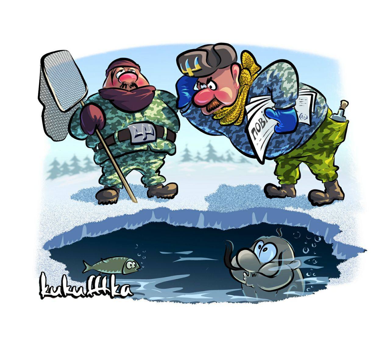 Абсурдность мобилизации на Украине своей карикатурой описала @kukufffka. Людей не стесняются ловить и бросать на мясо даже в такой день.