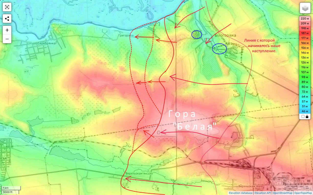 Фактически под контролем ВСУ сейчас только западные ее отроги. Их утеря будет обозначать утерю не только Григоровки, но и Серебрянки. И ВСУ вынуждены будут отступать на окраины Северска.
