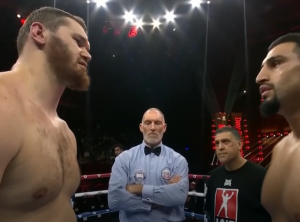 Баланс, работа ног Махмудова — это, конечно, то ещё зрелище. Здоровяк выглядит так, словно немного пьян. Кабайел чувствует себя чуть увереннее. В 3-м раунде дважды сконтрил кроссом, после чего полностью перехватил инициативу: избивал здоровяка, круто запускал по корпусу, несколько раз хорошо потряс. Запахло апсетом.