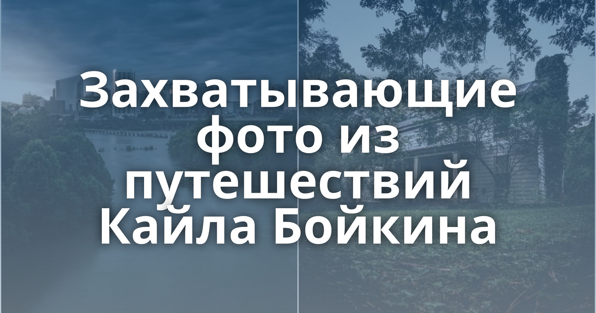 Кайл Бойкин (Kyle Boykin) - талантливый фотограф-самоучка и городской исследователь, в настоящее время проживающий в Ричмонде, штат Вирджиния. Он фокусируется главным образом на снимках заброшенных мест, пейзажах, городских и уличных фотографиях. Кайл путешествует по разным штатам Америки, и делает захватывающие снимки местных красот.