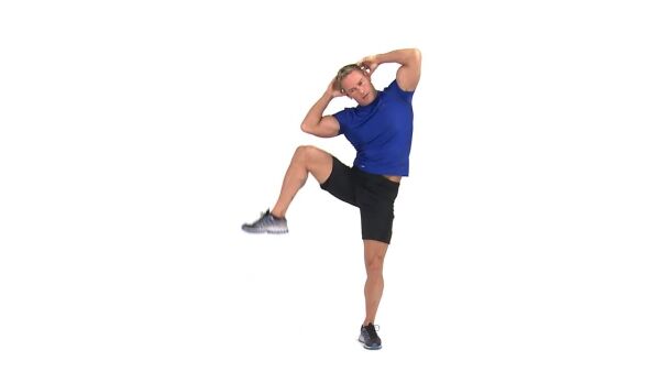 Правым коленом потянитесь к правому локтю.