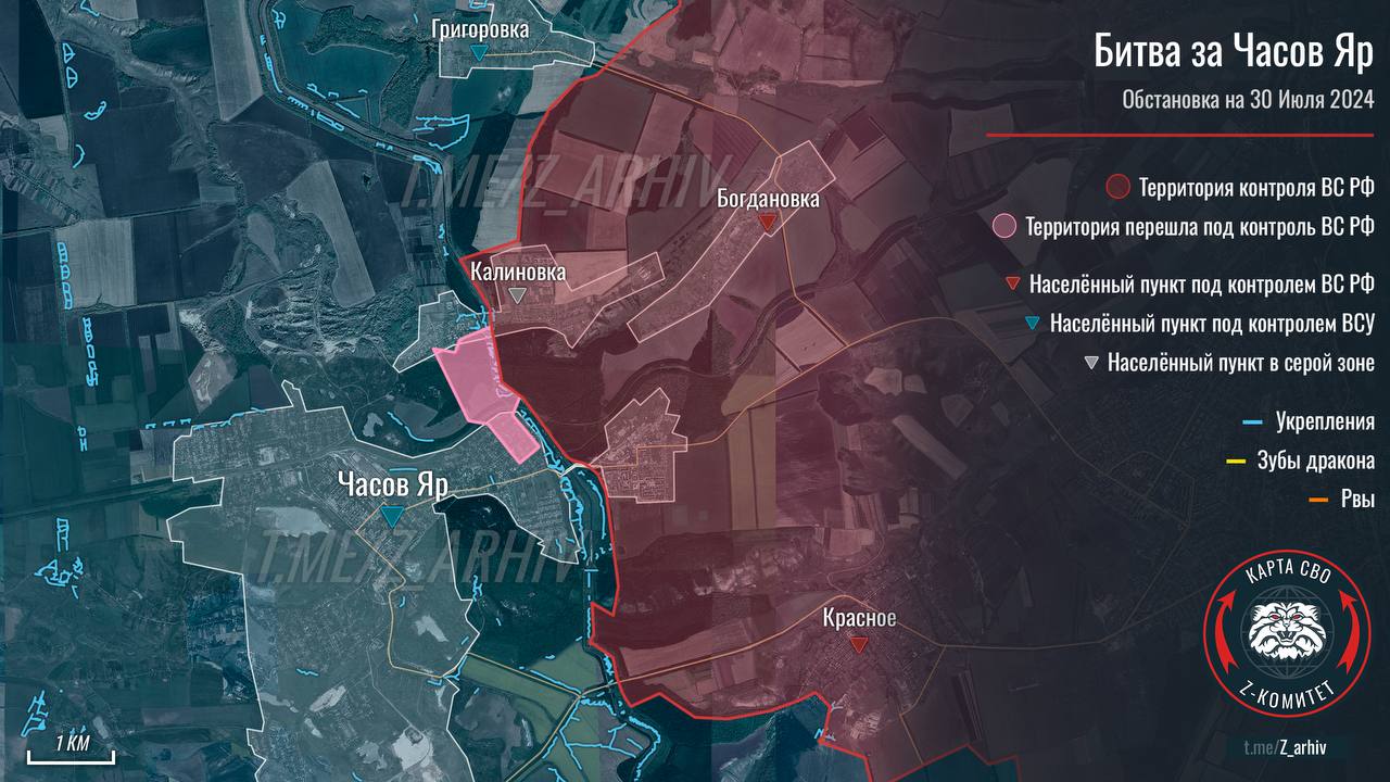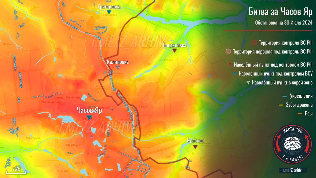 Продвижение ВС РФ возле Часов Яра. Штурмовые группы закрепляются на западном берегу канала.