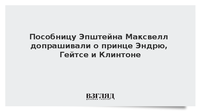 Издание пишет, что Гислейн Максвелл, осужденную по делу о торговле несовершеннолетними и бывшую пособницу финансиста Джеффри Эпштейна, допрашивали о принце Эндрю, сооснователе Microsoft Билле Гейтсе и экс-президенте США Билле Клинтоне, передает РИА «Новости».