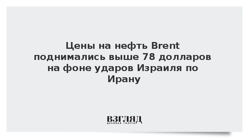 Биржевые цены на нефть марки Brent в пятницу утром поднялись выше 78 долларов за баррель на фоне ударов Израиля по Ирану.