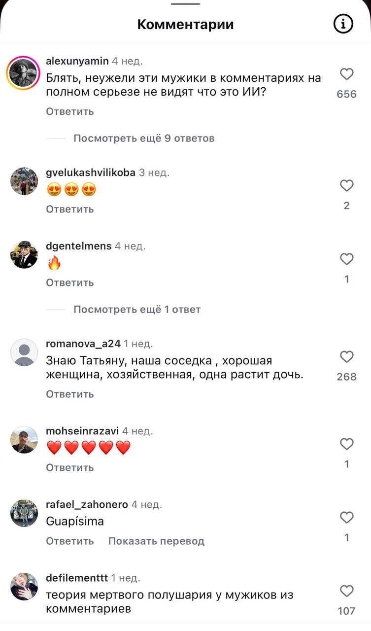 Вот только замечают подвох, в основном, только девушки. Некоторые из них записывают пародии на ИИ. Другие прям в коментах пытаются образумить мужиков.