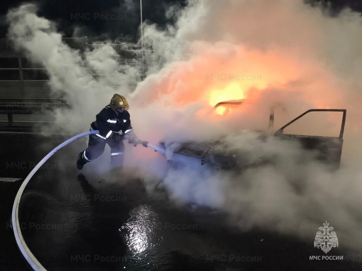 Заполыхал отечественный легковой автомобиль. Девять сотрудников МЧС, оперативно прибывших на место аварии, быстро справились с огнем. Пострадавших, к счастью, нет, а вот машина выгорела полностью, превратившись в груду железа.