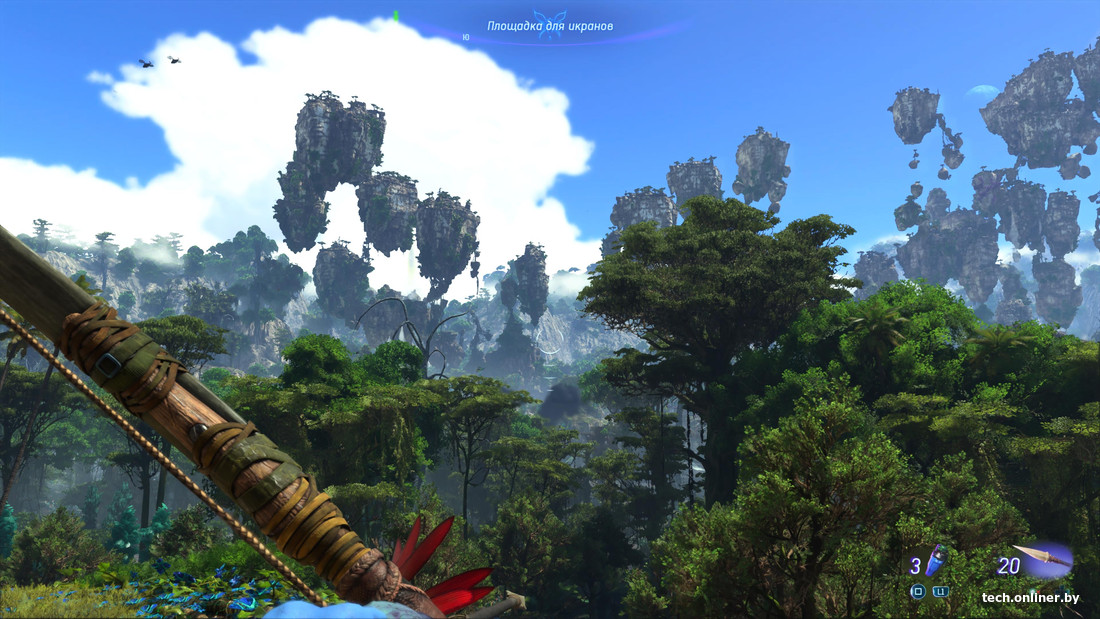 Наблюдать за сменяющимися пейзажами не надоедает. Зачастую к ним добавляют заглавный саундтрек фильмов. Скажем, когда взбираешься к парящим горам для установления связи с икраном (летающим животным, которого предстоит оседлать), возникают ощущения, как от самого первого просмотра. С высоты Пандора не менее впечатляет — немного жаль, что до появления икрана наиграть придется четыре-пять часов.