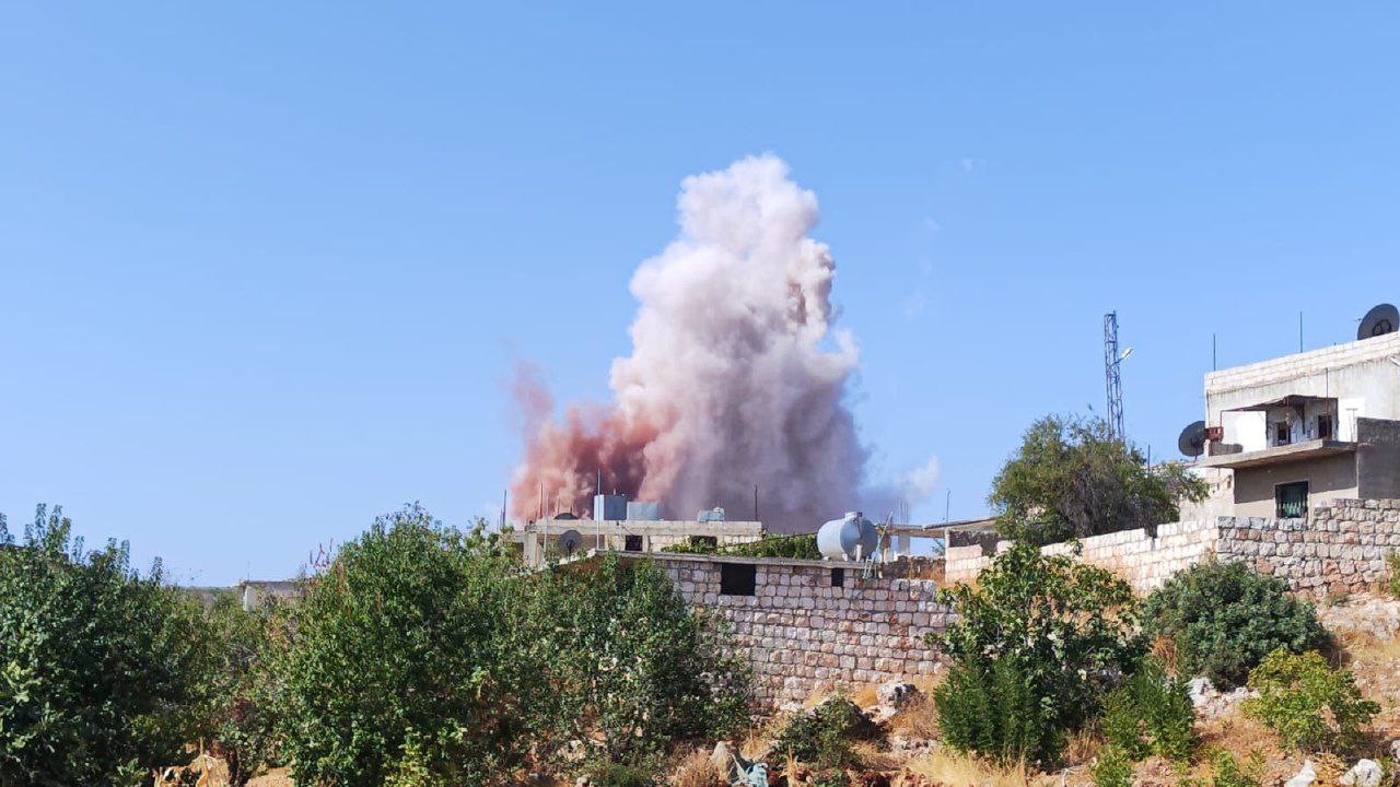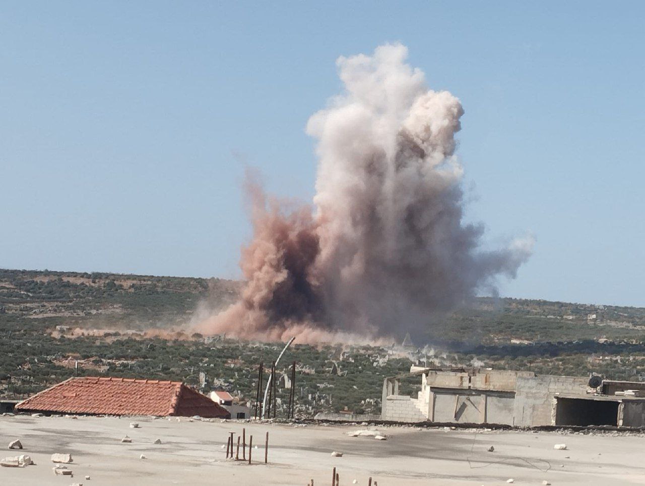 ВКС России наносят удары по штаб-квартирам и укреплениям террористических организаций в окрестностях деревни Аль-Бара в Джабаль-эз-Завии, к югу от Идлиба, Сирия.