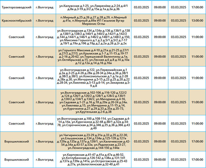 Полный список адресов, где отключат свет в Волгограде 3 марта: