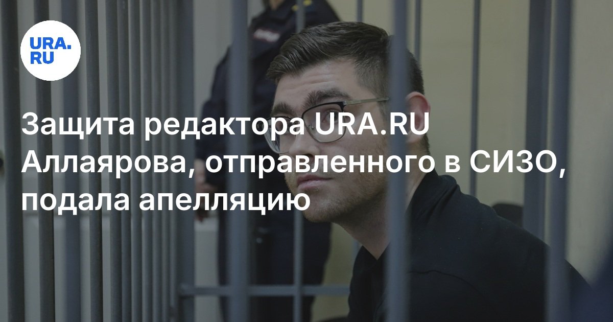 Защита редактора свердловской редакции URA.RU Дениса Аллаярова подала апелляционную жалобу в Ленинский районный суд Екатеринбурга. Об этом URA.RU рассказала его адвокат Анастасия Харисанова.